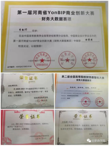 时光荏苒,转眼又是一年。回顾过去这一学年,在良师益友的教导和自身的刻苦学习下,我已初步掌握如何运用所学知识,也养成了认真对待学习的好习惯!回首过去的岁月,我收获了许多,在这一年中,我取得了“军训优秀学员”、“优秀学生干部”、“河南省商业创新大赛特等奖”、“第二届全国高等院校财务数智化大赛第二名”、“暑期社会实践先进个人”等荣誉。帮助运营,编辑信职pg娱乐电子游戏官网入口公众号。回顾昨天,我百感交集;面对今天,我信心百倍;展望明天,我任重道远!