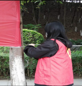 张鑫同学在信阳市羊山新区前进乡居委会参加志愿者服务工作。她主要负责的是配合工作人员维护社区生态环境,帮工作人员整理资料和文件,走访人民群众,了解社区居民的生活情况。
