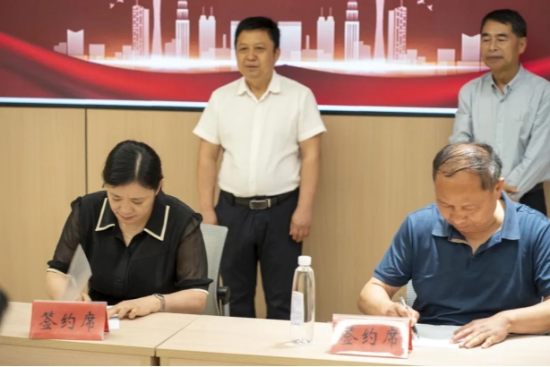 刘芳书记与邱业帅主任签署合作协议并合影留念。