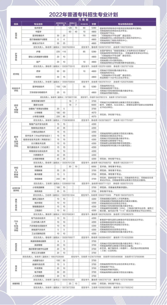 河南省普通专科招生专业计划表