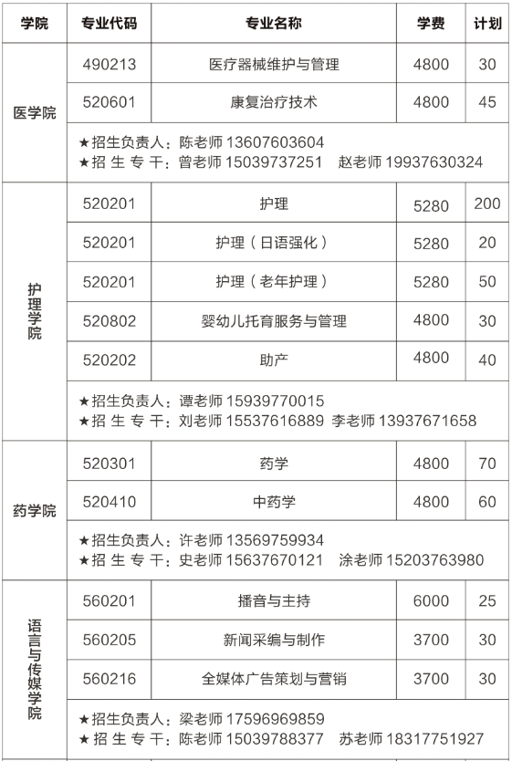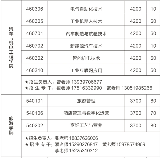 单招专业及计划(2000人)