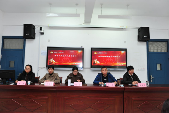 为加强师德师风建设,提高教师师德修养,3月1日下午,pg娱乐电子游戏官网入口在西教楼会议室召开师德暨教职工年度考核大会。pg娱乐电子游戏官网入口全体教职工参会,会议由副书记冷靖主持。
