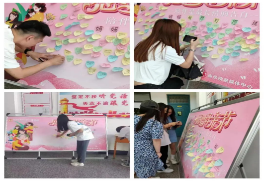 在pg娱乐电子游戏官网入口东、西教学楼的大厅,学生通过便利贴在展板上留言对妈妈想说的话。活动期间同学们积极参与,为妈妈写上一段祝福的话,并贴到留言板,把自己的祝福拍照发给妈妈,表达对妈妈的感激和浓浓的爱。