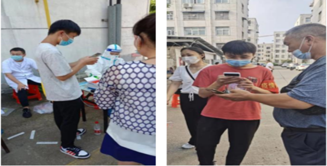 狄秋梦同学在南阳市唐河县文峰街道参加核酸志愿者活动,她主要负责的是:提醒人们认真佩戴好口罩,及时出示场所码,提前准备好核酸码,维持现场秩序,帮助那些不会用手机的老人登记核酸码,帮助核酸工作人员扫码。她坚信:“共同战疫,抗疫有我,在这场阻击战中,我们当以奉献诠释信念、以行动彰显忠诚、以初心不变担当使命,让祖国,人民认同我,让祖国和人民相信有我们明天会更好。”
