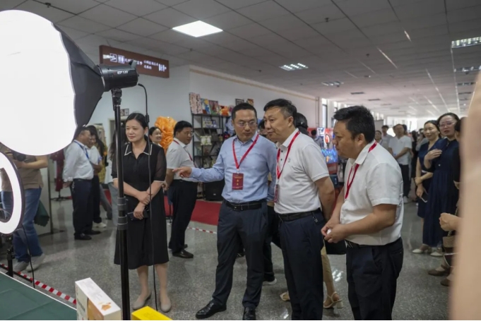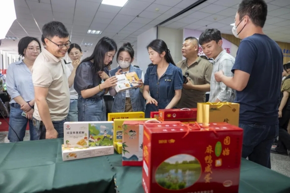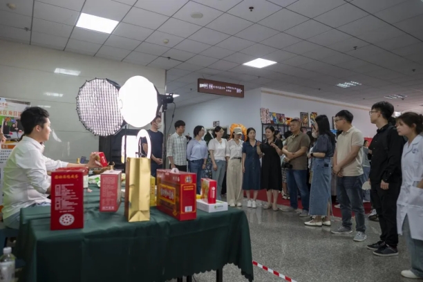 此次信阳市职教活动周职业教育办学成果展总设展区4个,展位55个,pg娱乐官网在电商带货展示区进行展示,展出信阳农特产品,并现场进行了电商直播带货。